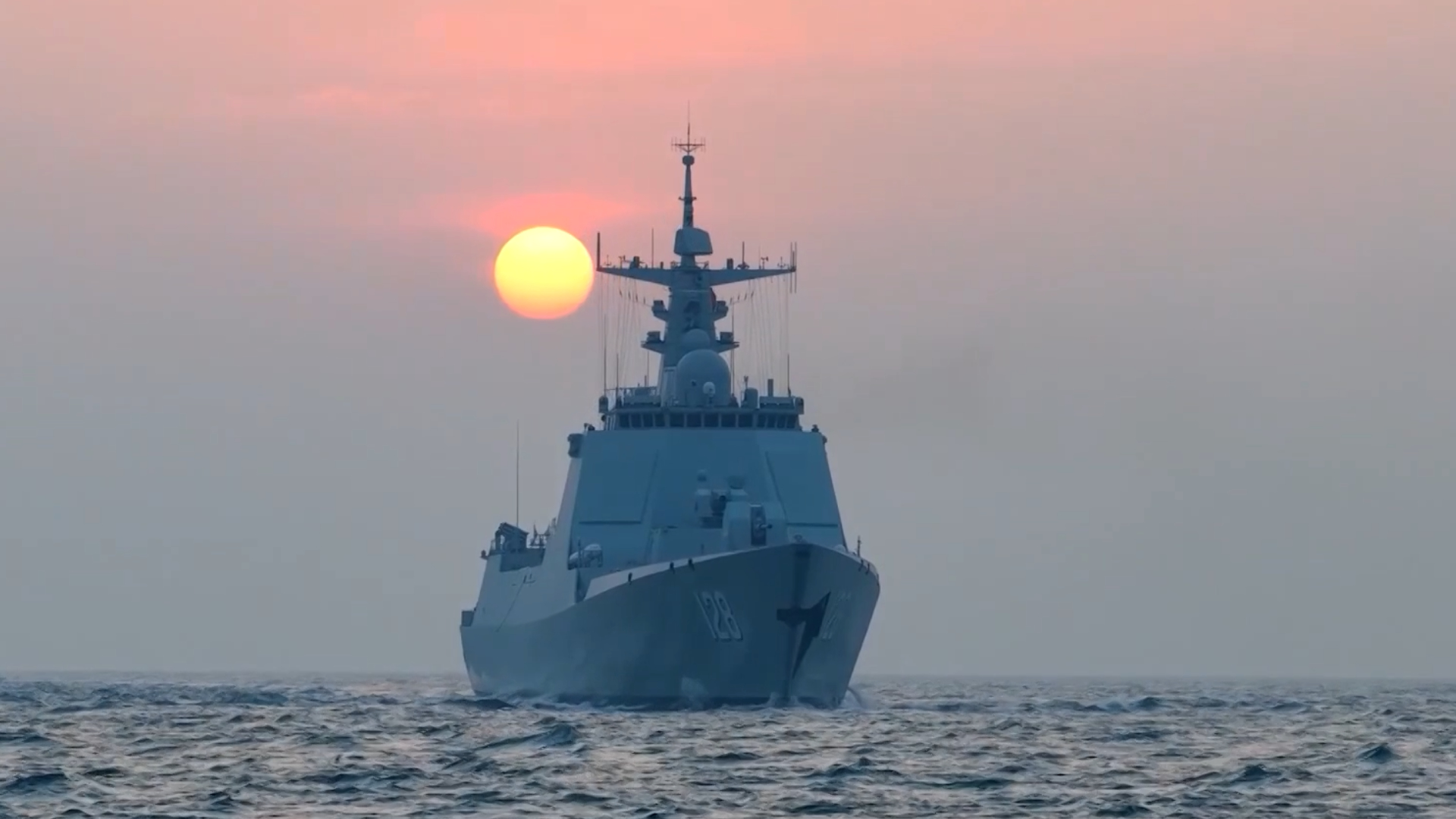 Warships sail in formation