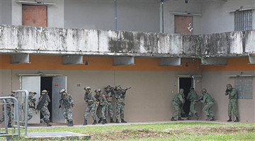 The race ground for the obstacle event of the “Seaborne Assault” contest features simulated complicated urban warfare environment. The whole race track totals 1,200 meters with 19 obstacles including wooden fences, brick walls, and high-and-low pile wire, as well as a 600-meter sprint track. Each marine contest was required to complete obstacle crossing and sprinting along the designated route, during which marines’ cooperation is tested.