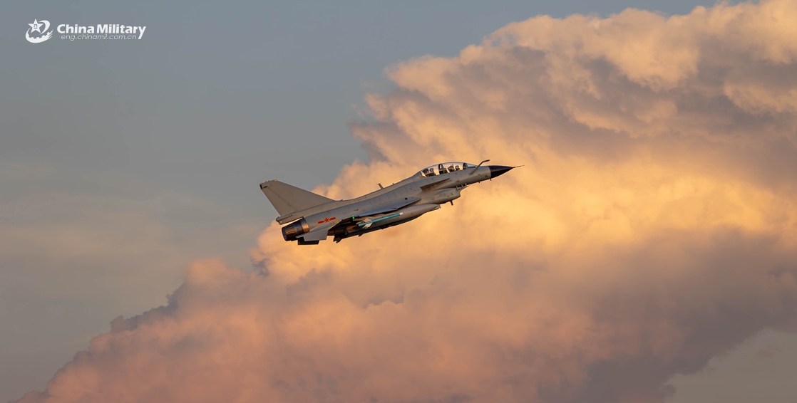 A two-seat J-10S fighter jet attached to Chinese PLA Air Force flies towards the designated airspace during an air-combat training exercise. (eng.chinamil.com.cn/Photo by Wang Wen and Lan Shanhu)近日,西南某机场空军某部组织开展了一场红蓝对抗训练。(英文中国军网/王文、蓝善湖)