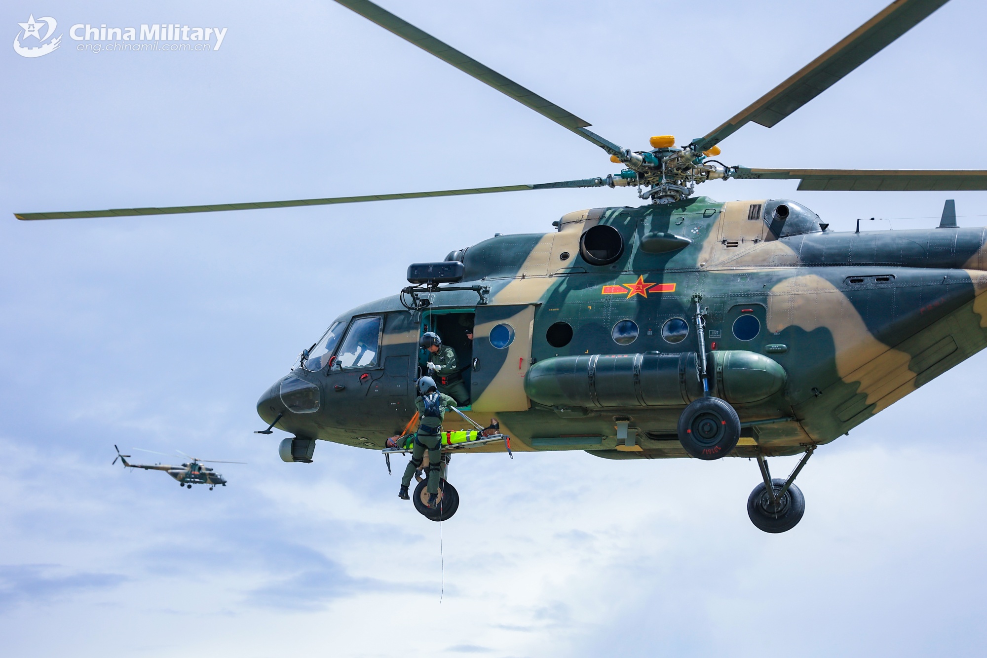 Soldiers assigned to a unit with the air force under the Chinese PLA Western Theater Command conduct search and rescue training with Mi-171 transport helicopters in early July, 2025. (eng.chinamil.com.cn/Photo by Tao Jianxin)