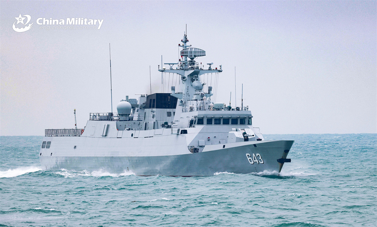 Type 056A frigate Yichun (Hull 643) attached to a frigate flotilla under the Chinese PLA Navy sails on the sea during a maritime training exercise on November 27, 2025. (eng.chinamil.com.cn/Photo by Yang Haifan)