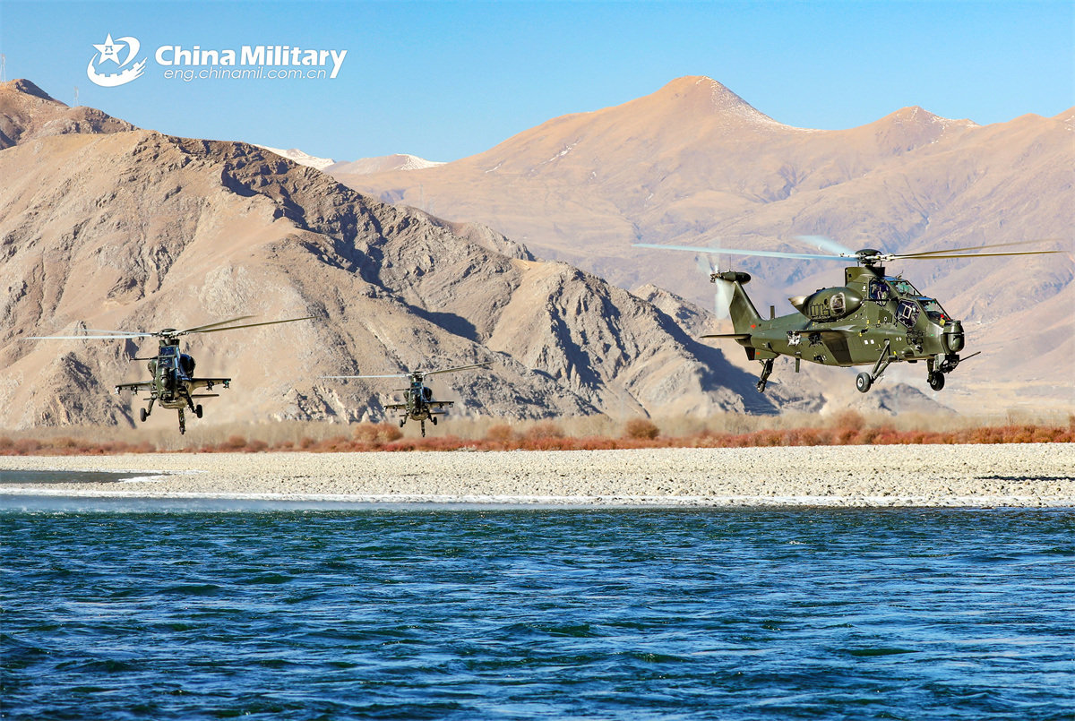 Z-10 attack helicopters attached to a brigade under the Chinese PLA Army participate in a flight training exercise on January 12, 2026. (eng.chinamil.com.cn/Photo by Hu Qiwu)1月12日,陆军某旅开展飞行训练,锤炼飞行员技战术水平。(英文中国军网/胡其武 摄)