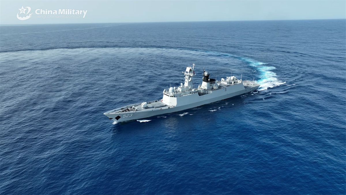 Guided-missile frigate Honghe (Hull 523) attached to the 47th Chinese naval escort taskforce maneuvers at sea during a training exercise. (eng.chinamil.com.cn/Photo by Li Zhengcao)