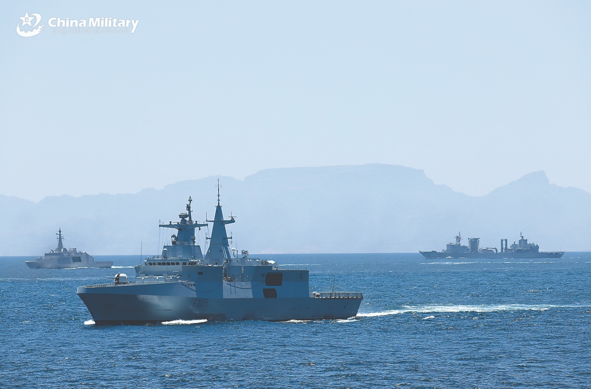 During navigation, under the command of the Chinese side, the participating naval vessels maneuvered in the single line ahead formation and conducted formation changes as planned. The drills focused on maritime strike, rescue of hijacked vessel, joint maritime search and rescue, and other subjects. The participating naval troops from different countries covered and supported each other in close coordination.