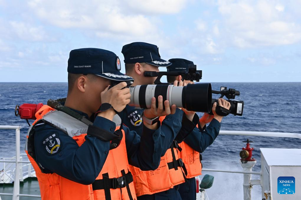 Law enforcers conduct evidence collection training aboard the China Coast Guard (CCG) vessel Wanshan in the territorial waters of China's Huangyan Dao, Feb. 11, 2026. Right ahead of the Chinese New Year, a traditional occasion for family reunion in China, a group of young law enforcers remain loyally stationed and highly alert around the clock, hundreds of miles away from their loved ones. (Photo by Zhai Yifan/Xinhua)