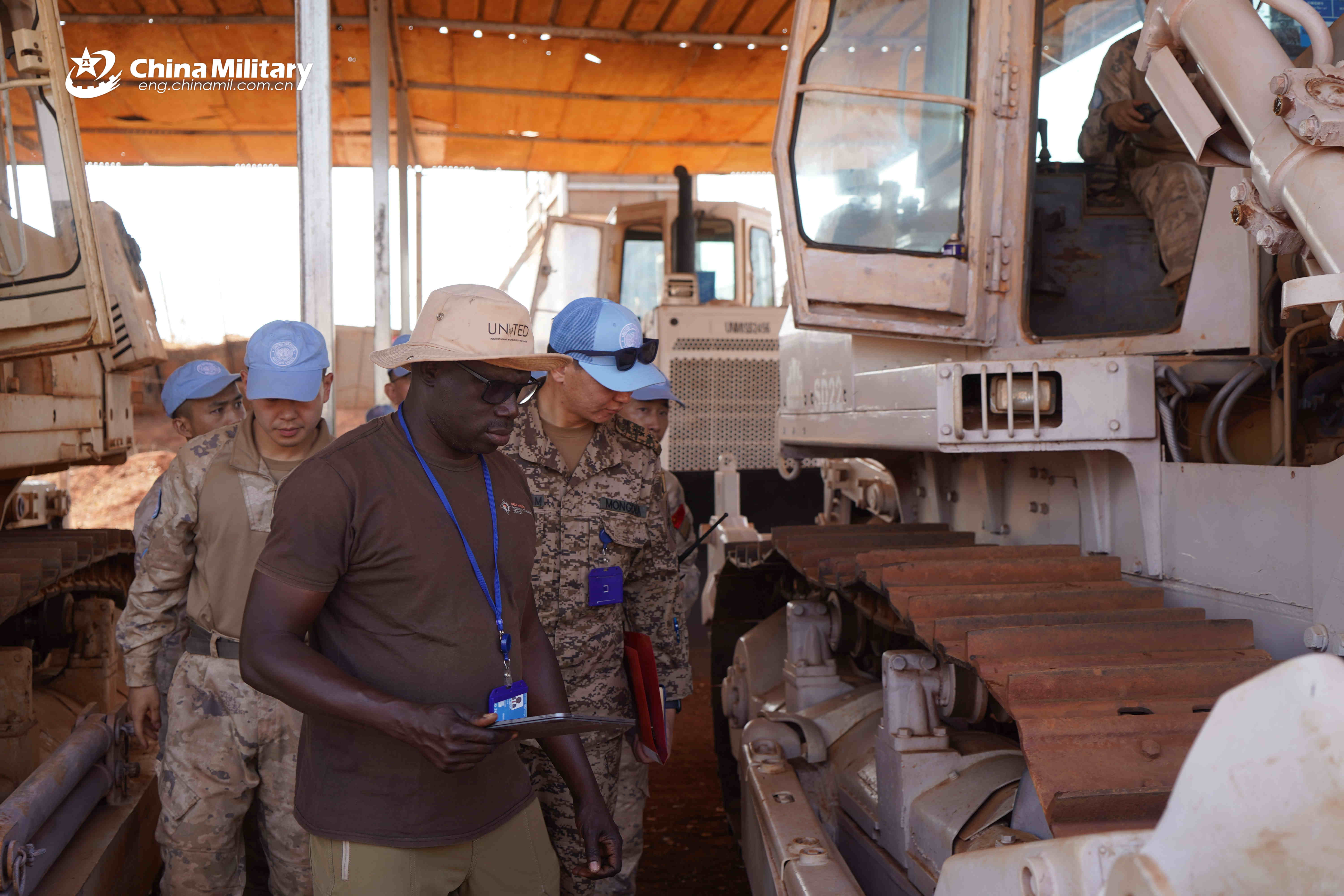 A joint inspection team, consisted of specialists from the logistics, equipment, medical, engineering and environmental departments of the United Nations Mission in South Sudan (UNMISS), conducted comprehensive check on the Chinese peacekeeping troops’ serviceability and maintainability of vehicles, engineering equipment, weapons and ammunition, special equipment, living facilities and individual gear.