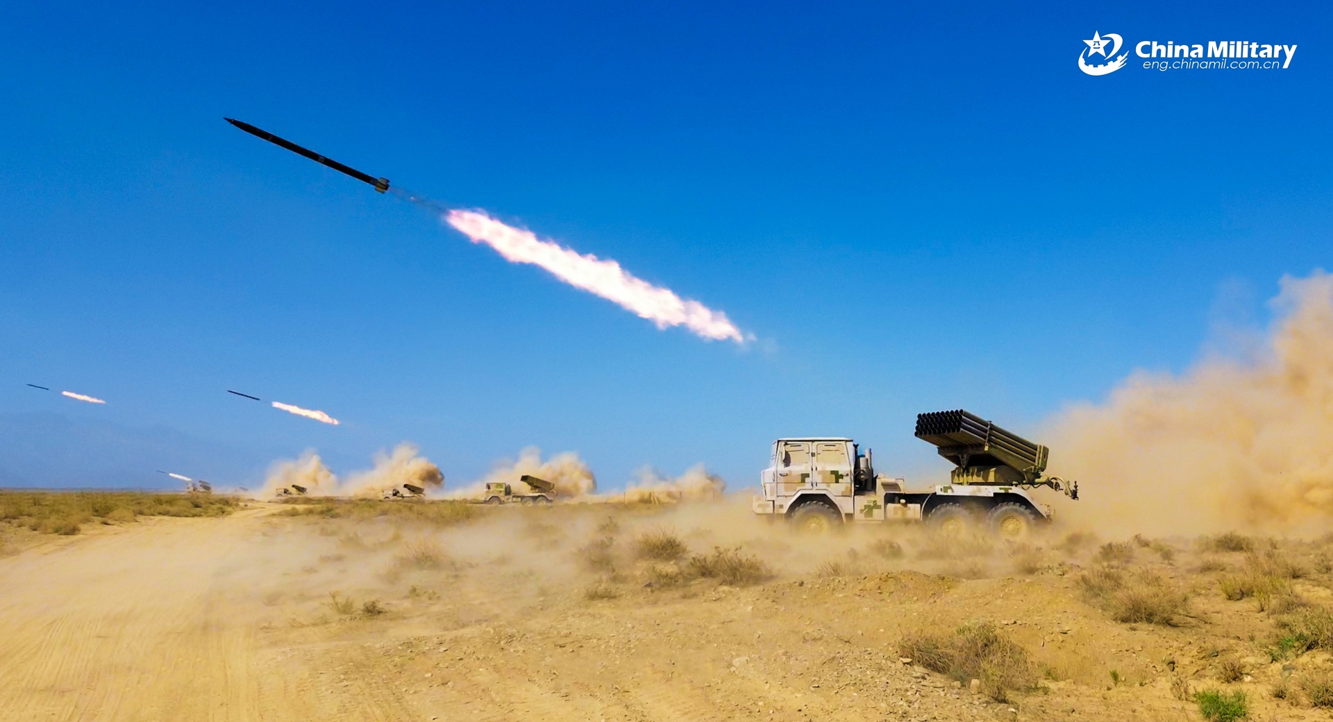 Type PHL-81 multiple launch rocket systems (MLRS) attached to a brigade under the Chinese PLA 77th Group Army fire at the targets during a live-fire shooting training exercise in early October, 2025. (eng.chinamil.com.cn/Photo by Tian Yudong)