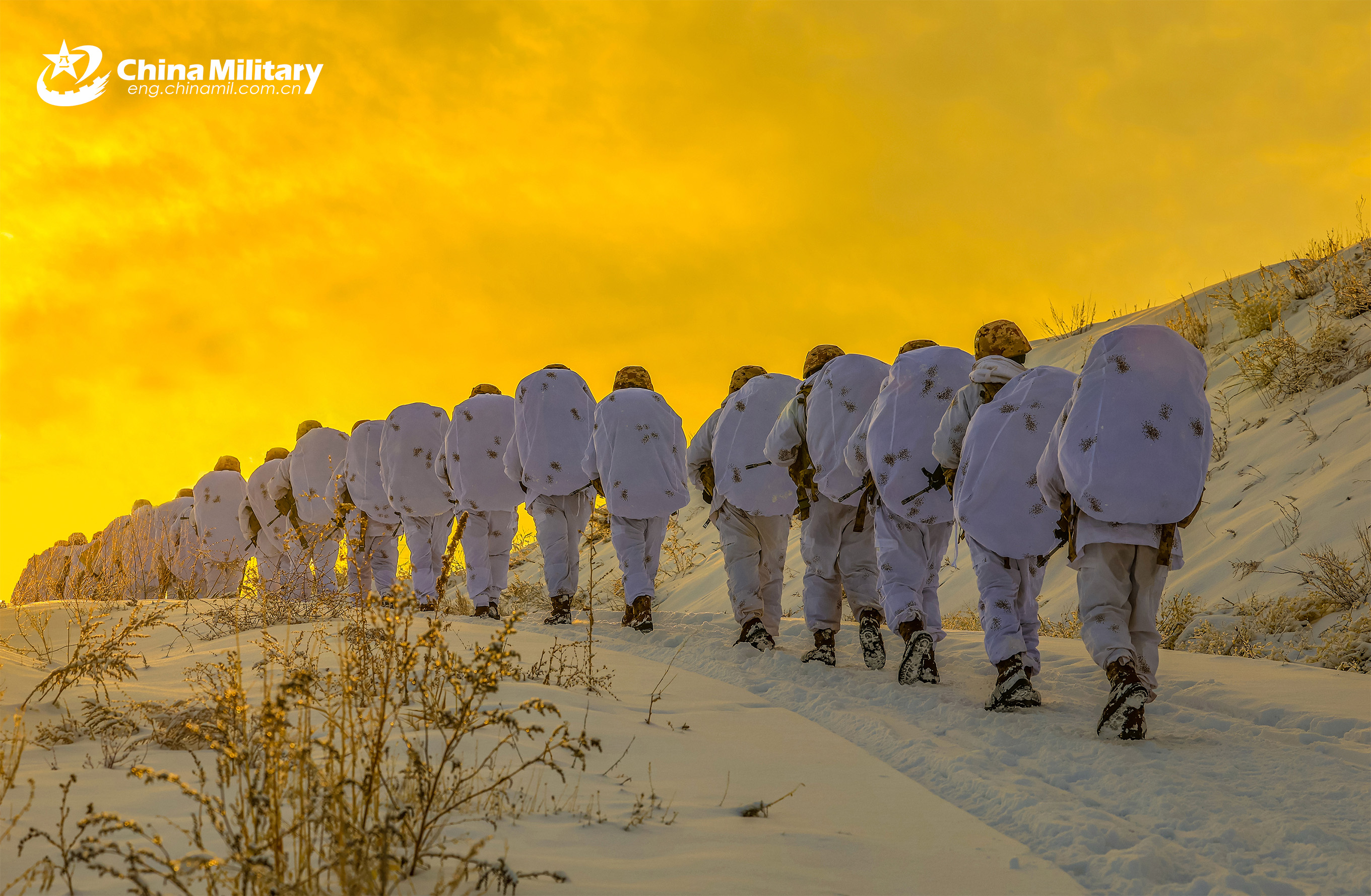 Soldiers assigned to a border defense regiment under the Chinese PLA Army conduct ruck march along the mountain trail in late December, 2025. (eng.chinamil.com.cn/Photo by Wang Yue)
