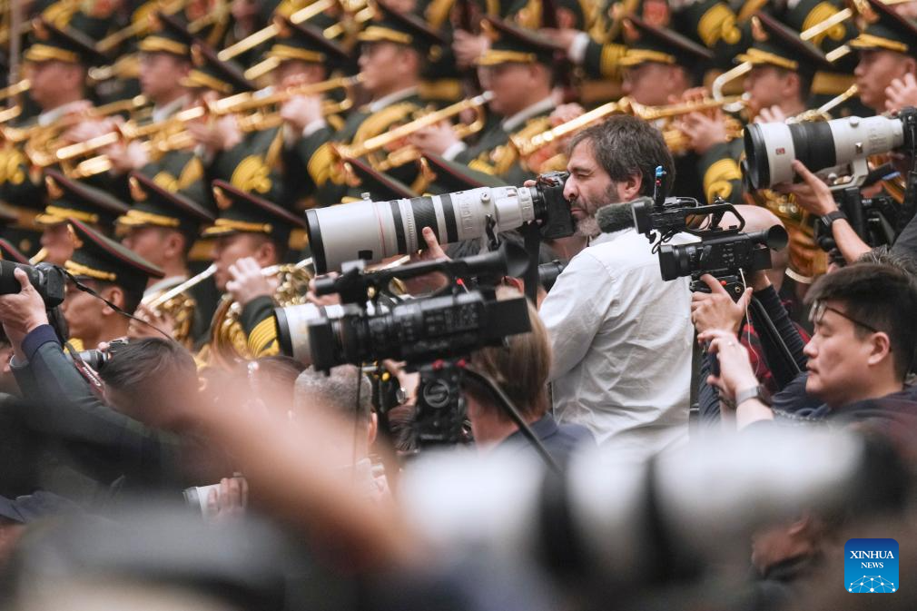 Journalists work at the opening meeting of the fourth session of the 14th National People's Congress (NPC) at the Great Hall of the People in Beijing, capital of China, March 5, 2026. (Xinhua/Wang Xi)