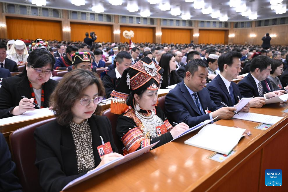 Members of the National Committee of the Chinese People's Political Consultative Conference (CPPCC) sit in on the opening meeting of the fourth session of the 14th National People's Congress (NPC) as non-voting participants at the Great Hall of the People in Beijing, capital of China, March 5, 2026. (Xinhua/Li Xiao)