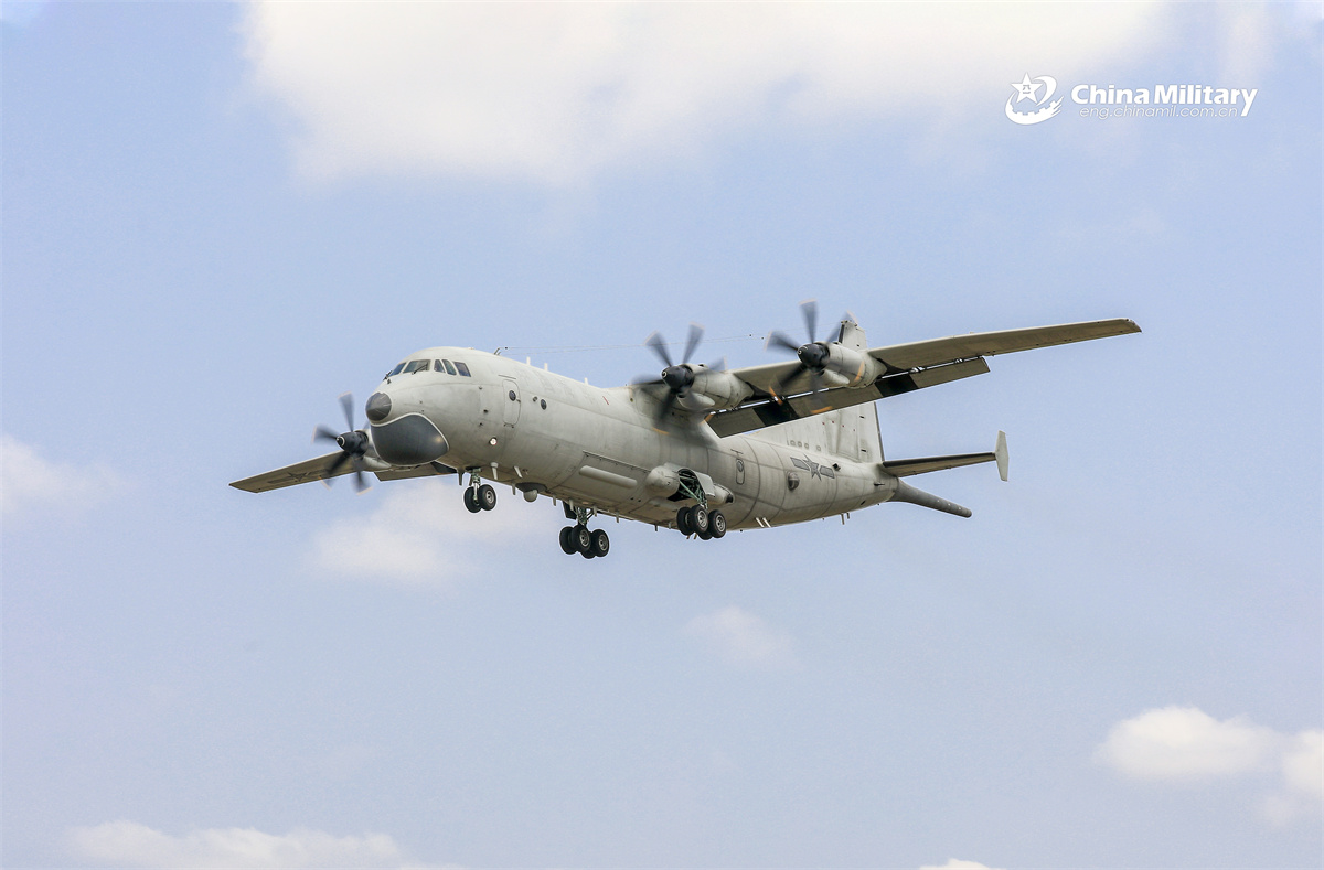 A Y-8 anti-submarine patrol aircraft attached to an aviation regiment under the Chinese PLA Navy cuts through the cloud during a training exercise on April 16, 2026. (eng.chinamil.com.cn/Photo by Qin Qianjiang)
