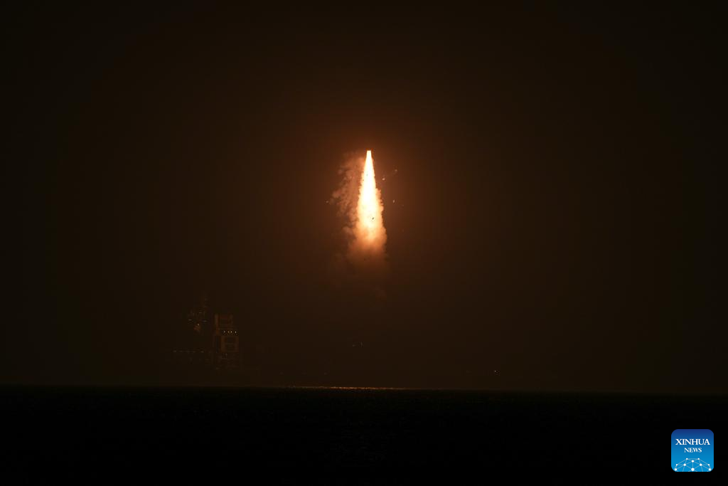 HAIYANG, Shandong, Nov. 9 (Xinhua) -- China has launched a group of new test satellites into space from waters off the coast of Haiyang, east China's Shandong Province, on Sunday.