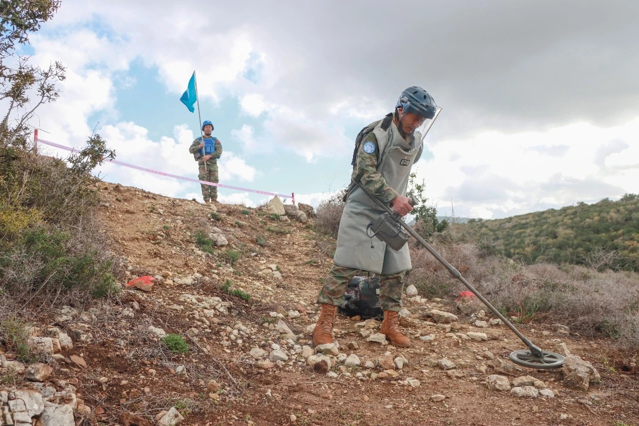 BEIRUT, Jan. 4 -- The 24th Chinese peacekeeping force to the United Nations Interim Force in Lebanon (UNIFIL) recently completed its first blue barrels maintenance task in the southern border area of Lebanon since its deployment to the mission area on December 15, 2025.