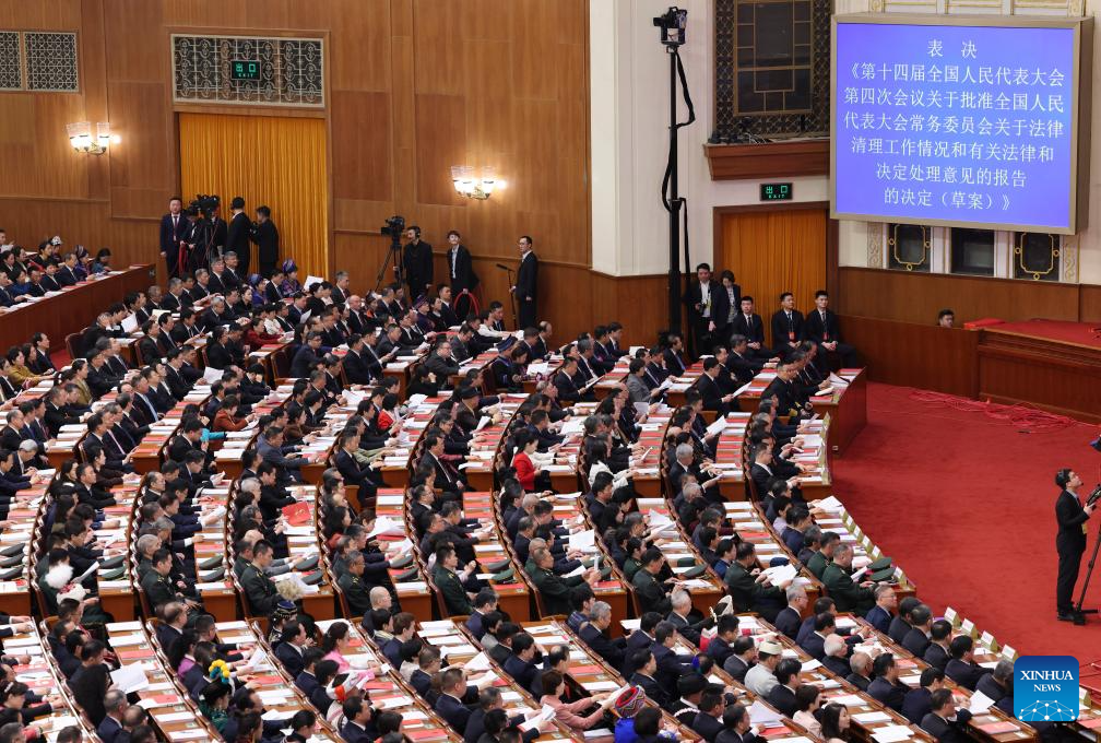 BEIJING, March 12 (Xinhua) -- The 14th National People's Congress (NPC), China's national legislature, held the closing meeting of its fourth session on Thursday.