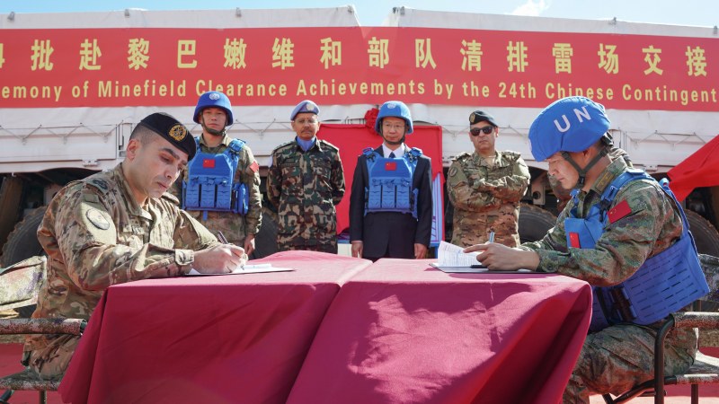 Chinese Peacekeepers in Lebanon hand over cleared minefield to Lebanon