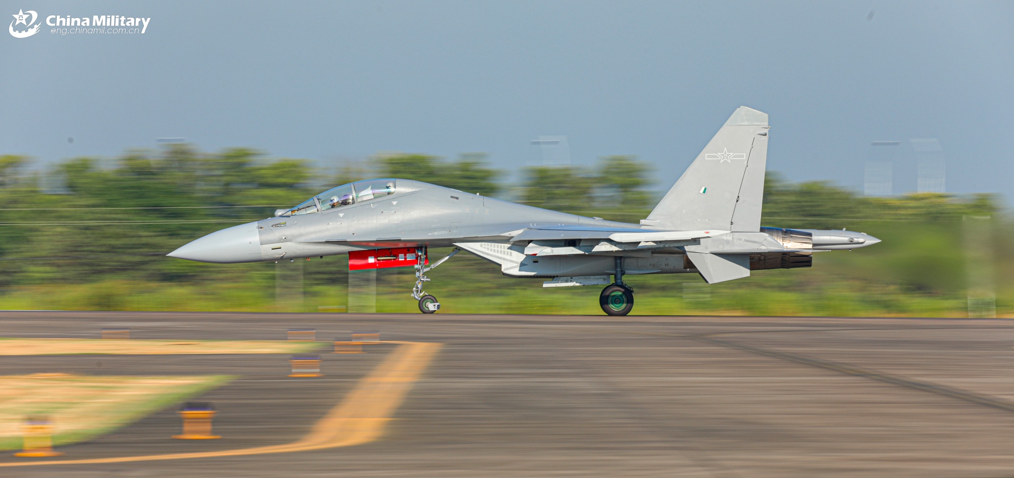 A J-16 multi-role fighter jet attached to an aviation brigade of the Chinese PLA Air Force taxis on the tarmac during a flight training exercise in late August, 2025. (eng.chinamil.com.cn/Photo by Ai Yuelin)