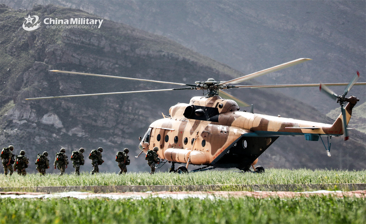 Rigged with combat loads, paratroopers assigned to a brigade under the Chinese PLA Army file into a Mi-171E transport helicopter during a parachute training exercise in mid September, 2025. (eng.chinamil.com.cn/Photo by Hu Qiwu)