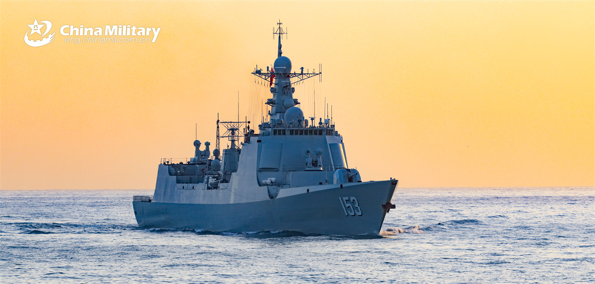The guided-missile destroyer Xi'an (Hull 153) attached to a flotilla under the Chinese PLA Navy sails at sea during a replenishment-at-sea training exercise in late November, 2025. (eng.chinamil.com.cn/Photo by Xia Yukang)