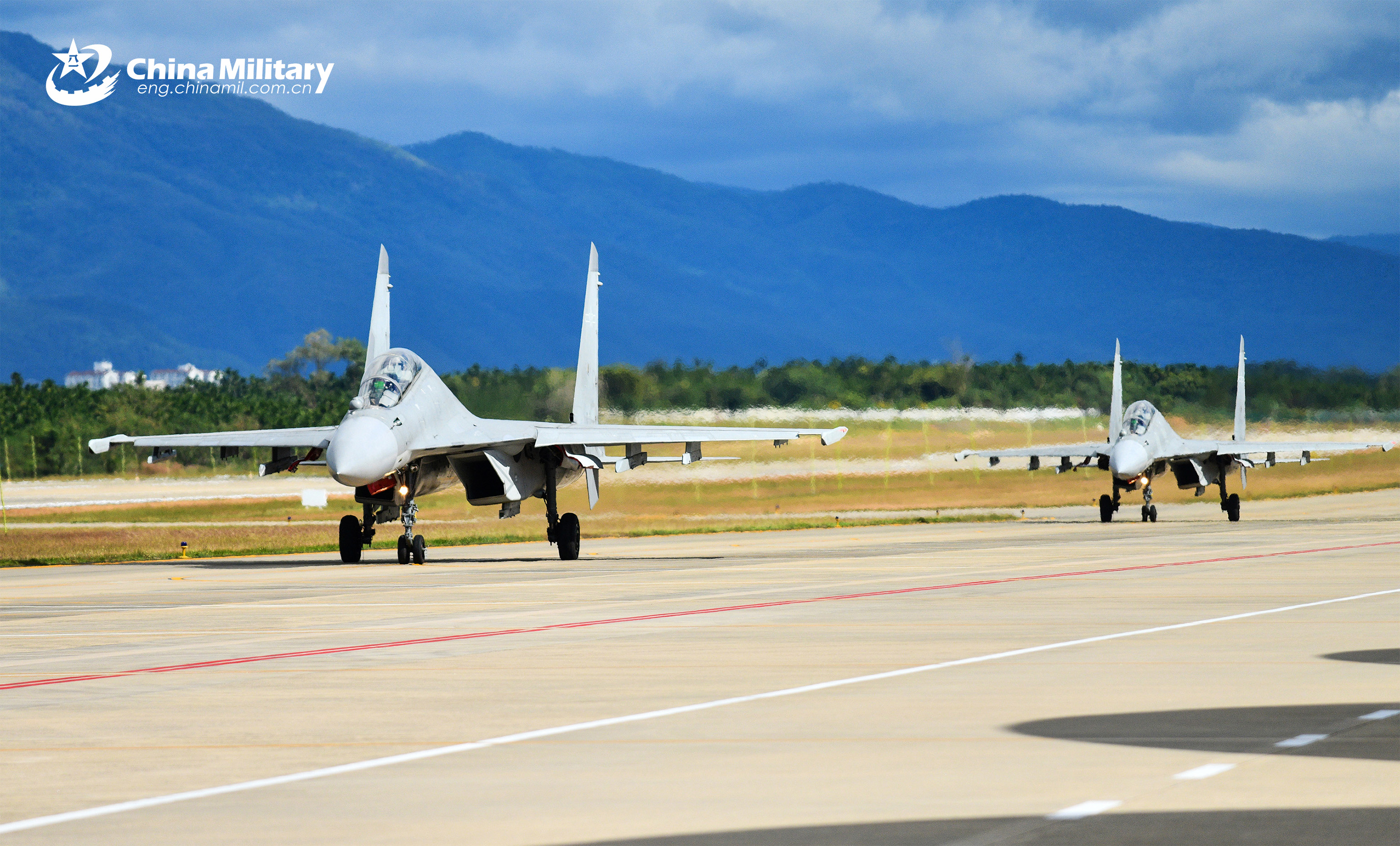 J-16 fighter jets attached to a unit with the air force under the Chinese PLA Northern Theater Command taxi on the runway before takeoff during a flight training exercise in early December, 2025. (eng.chinamil.com.cn/Photo by Zhao Yutong)
