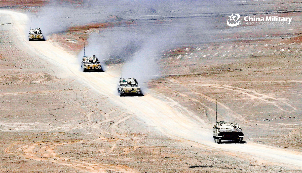 A group of PLZ-07 self-propelled howitzers attached to a regiment under the Chinese PLA Army march in formation during a driving training exercise on February 12, 2026. (eng.chinamil.com.cn/Photo by Yuan Kai)