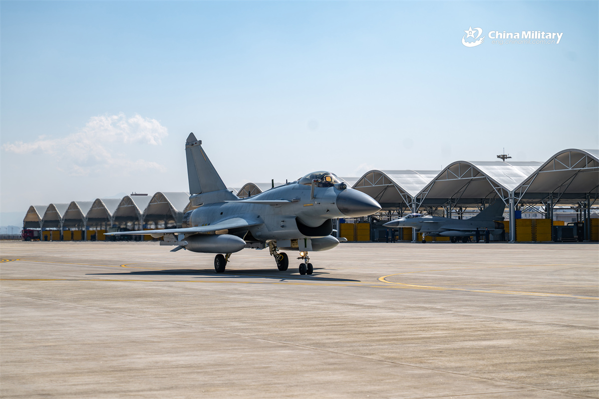 A J-10 multi-role fighter jet attached to an aviation brigade with the air force under the Chinese PLA Southern Theater Command taxis on the tarmac during a flight training exercise in early February, 2026. (eng.chinamil.com.cn/Photo by Xiao Rui)
