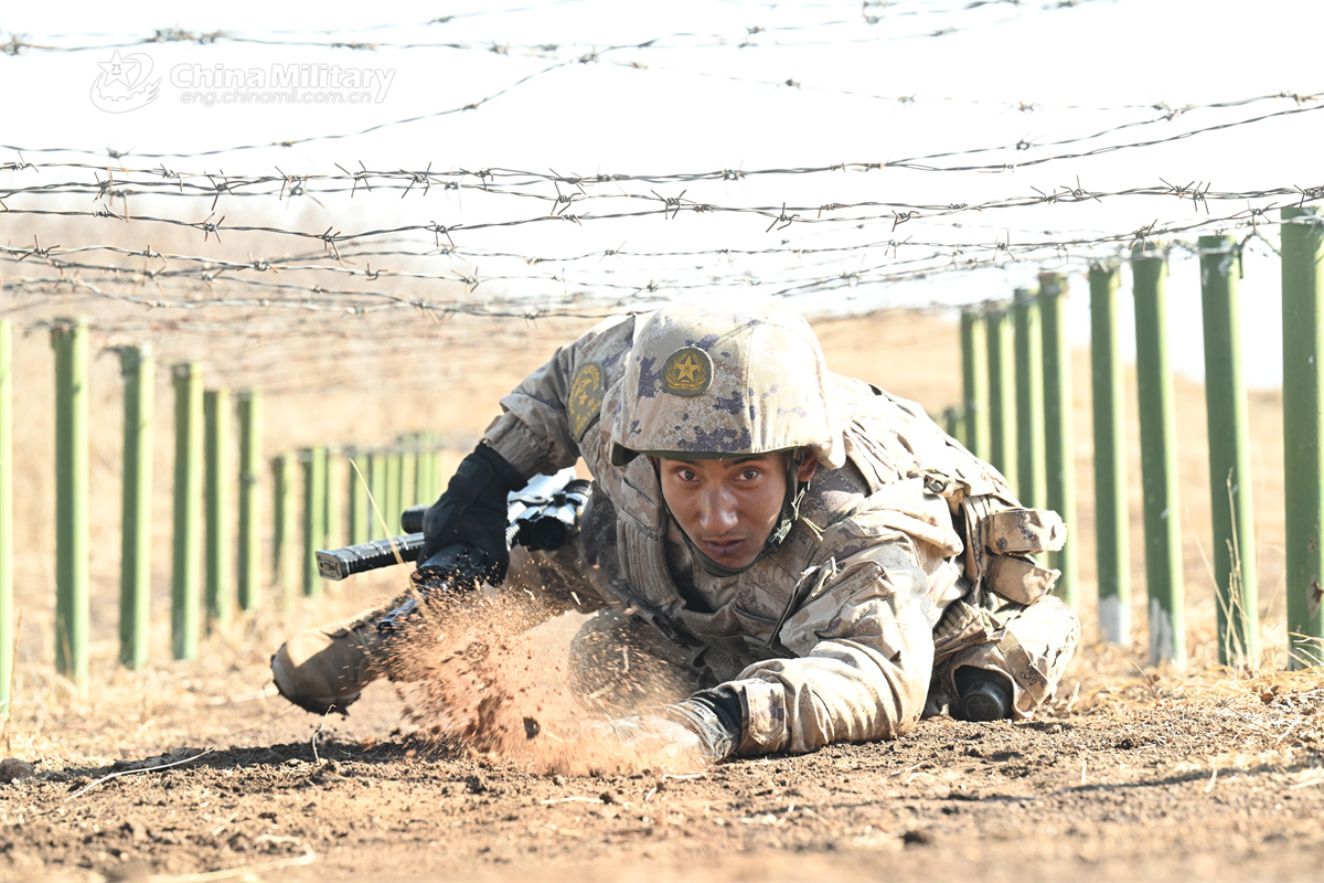 A soldier assigned to a reconnaissance detachment of a brigade under the Chinese PLA 76th Group Army low-crawls under barbed wires during a training exercise. (eng.chinamil.com.cn/Photo by Yang Chenghao)