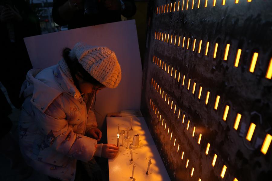 A girl lights a candle during a memorial event held to mourn the students of an elementary school who were killed in a missile strike in southern Iran, in Tehran, Iran, April 6, 2026. (Xinhua/Shadati)