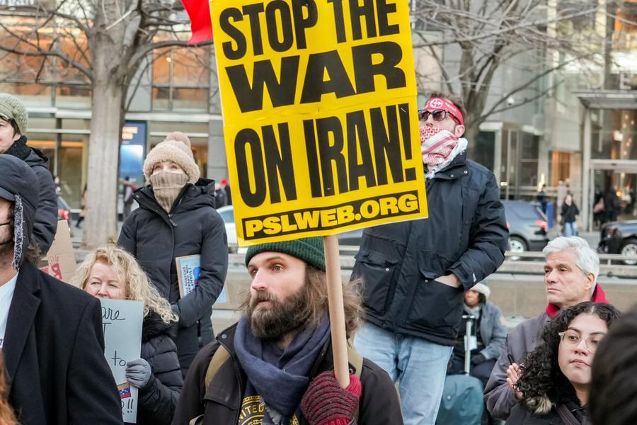 People protest against U.S. military attack on Iran in New York, the United States, on March 2, 2026. (Photo by Zack Zhang/Xinhua)