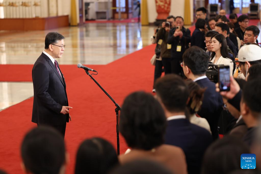 Chinese Minister of Science and Technology Yin Hejun gives an interview after the opening meeting of the fourth session of the 14th National People's Congress (NPC) at the Great Hall of the People in Beijing, capital of China, March 5, 2026. (Xinhua/Wang Xi)