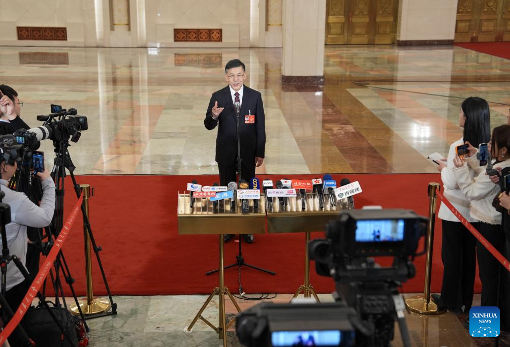 Chinese Minister of Science and Technology Yin Hejun gives an interview after the opening meeting of the fourth session of the 14th National People's Congress (NPC) at the Great Hall of the People in Beijing, capital of China, March 5, 2026. (Xinhua/Li Xin)