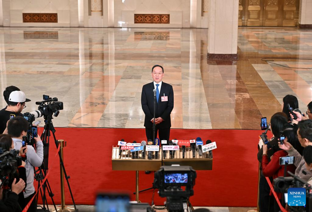 Chinese Minister of Science and Technology Yin Hejun gives an interview after the opening meeting of the fourth session of the 14th National People's Congress (NPC) at the Great Hall of the People in Beijing, capital of China, March 5, 2026. (Xinhua/Jin Liwang)
