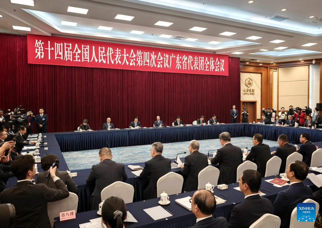 A group meeting of deputies from the delegation of Guangdong Province is held at the fourth session of the 14th National People's Congress (NPC) in Beijing, capital of China, March 6, 2026. (Xinhua/Xing Guangli)
