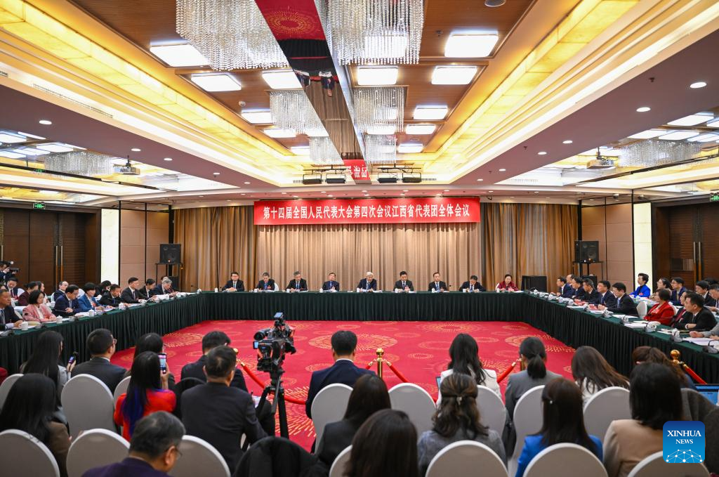 A group meeting of deputies from the delegation of Jiangxi Province is held at the fourth session of the 14th National People's Congress (NPC) in Beijing, capital of China, March 6, 2026. (Xinhua/Cai Xiangxin)