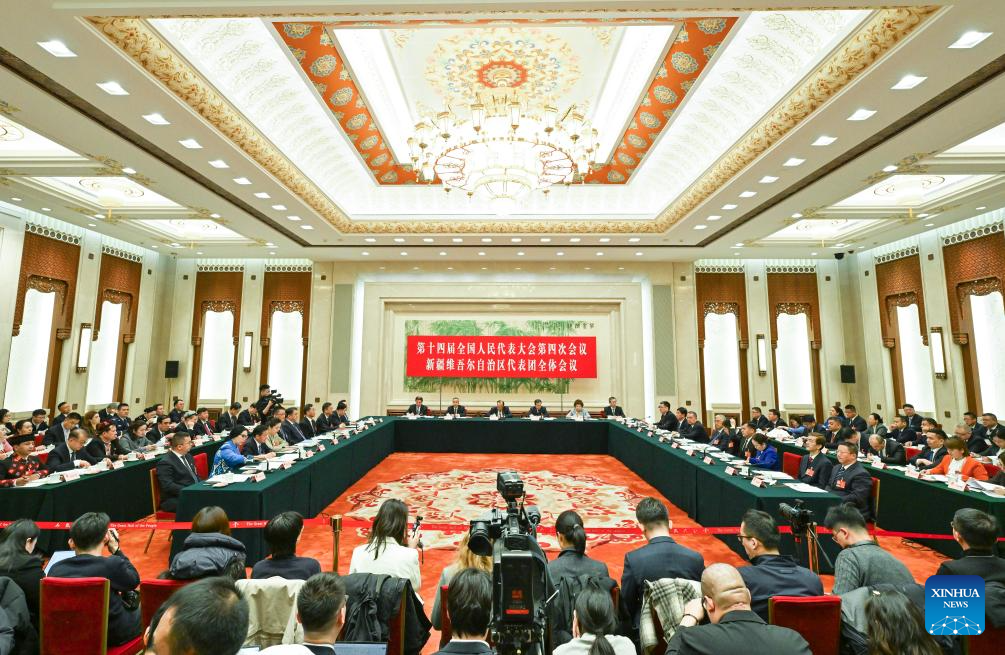 A group meeting of deputies from the delegation of Xinjiang Uygur Autonomous Region is held at the fourth session of the 14th National People's Congress (NPC) in Beijing, capital of China, March 6, 2026. (Xinhua/Cheng Tingting)