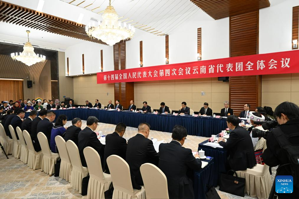 A group meeting of deputies from the delegation of Yunnan Province is held at the fourth session of the 14th National People's Congress (NPC) in Beijing, capital of China, March 7, 2026. (Xinhua/Cheng Tingting)