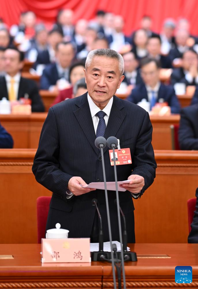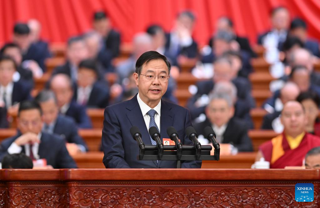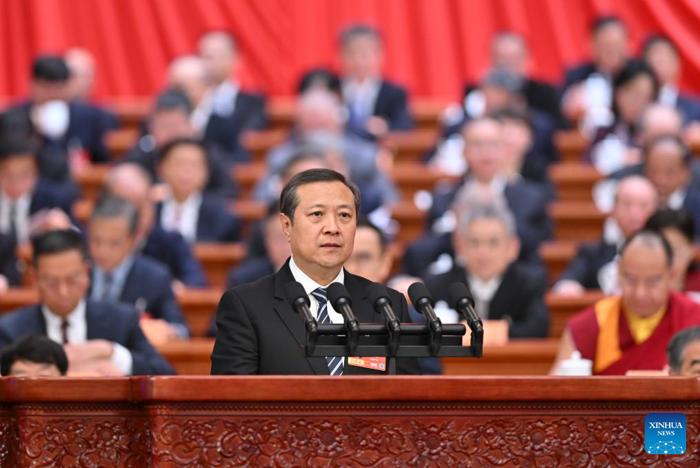 Wang Jinnan, a member of the 14th National Committee of the Chinese People's Political Consultative Conference (CPPCC), speaks on behalf of the Central Committee of the Chinese Peasants and Workers Democratic Party at the third plenary meeting of the fourth session of the 14th CPPCC National Committee at the Great Hall of the People in Beijing, capital of China, March 8, 2026. (Xinhua/Zhang Ling)