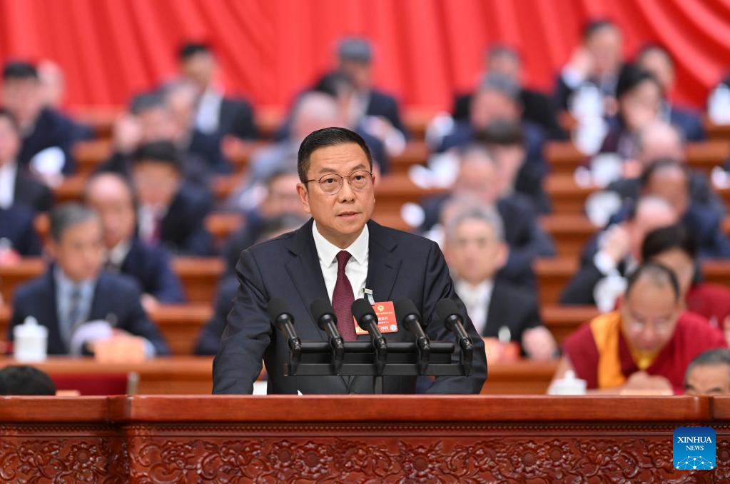 Wen Shugang, a member of the 14th National Committee of the Chinese People's Political Consultative Conference (CPPCC), speaks at the third plenary meeting of the fourth session of the 14th CPPCC National Committee at the Great Hall of the People in Beijing, capital of China, March 8, 2026. (Xinhua/Zhang Ling)