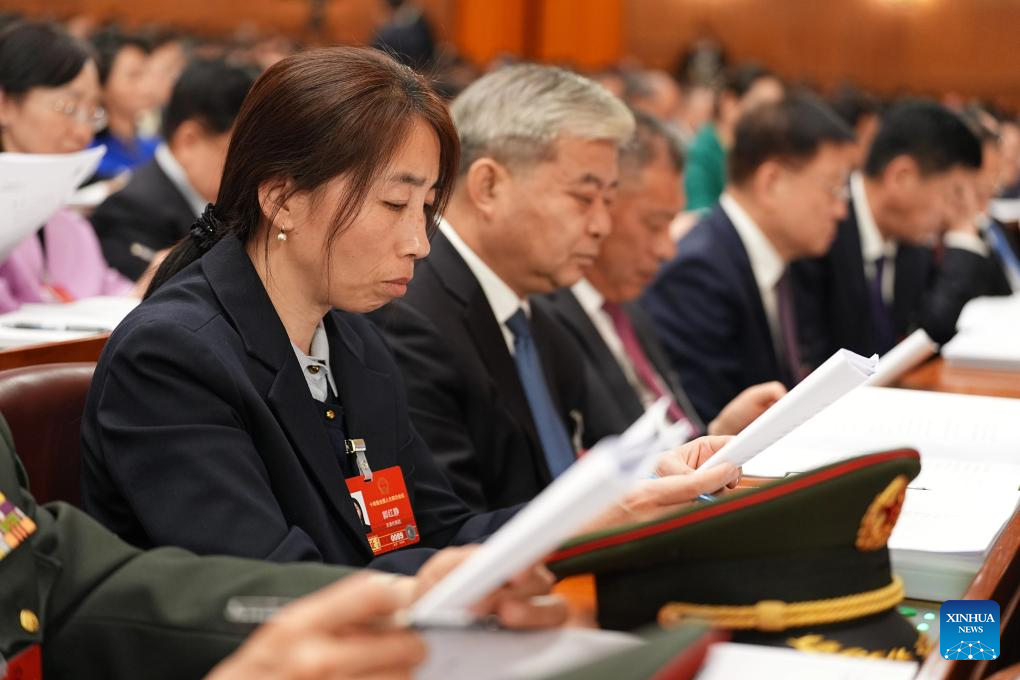 Xu Fengcan, a deputy to the 14th National People's Congress (NPC), attends the opening meeting of the fourth session of the 14th NPC at the Great Hall of the People in Beijing, capital of China, March 5, 2026.