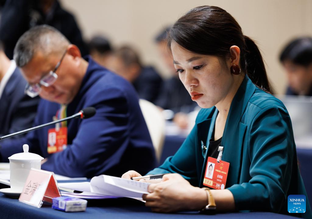 Jin Ruirui, a deputy to the 14th National People's Congress (NPC), attends a group deliberation at the fourth session of the 14th NPC in Beijing, capital of China, March 6, 2026.