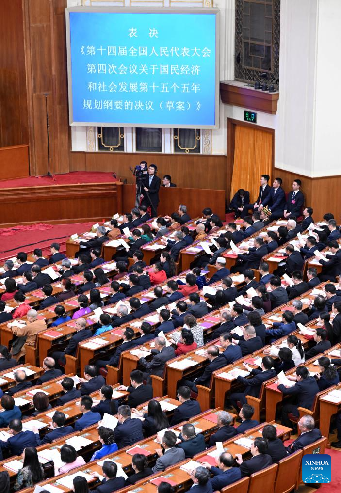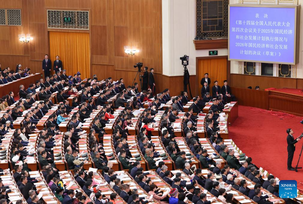 Lawmakers approved the government work report and the outline of the 15th Five-Year Plan (2026-2030) for national economic and social development.