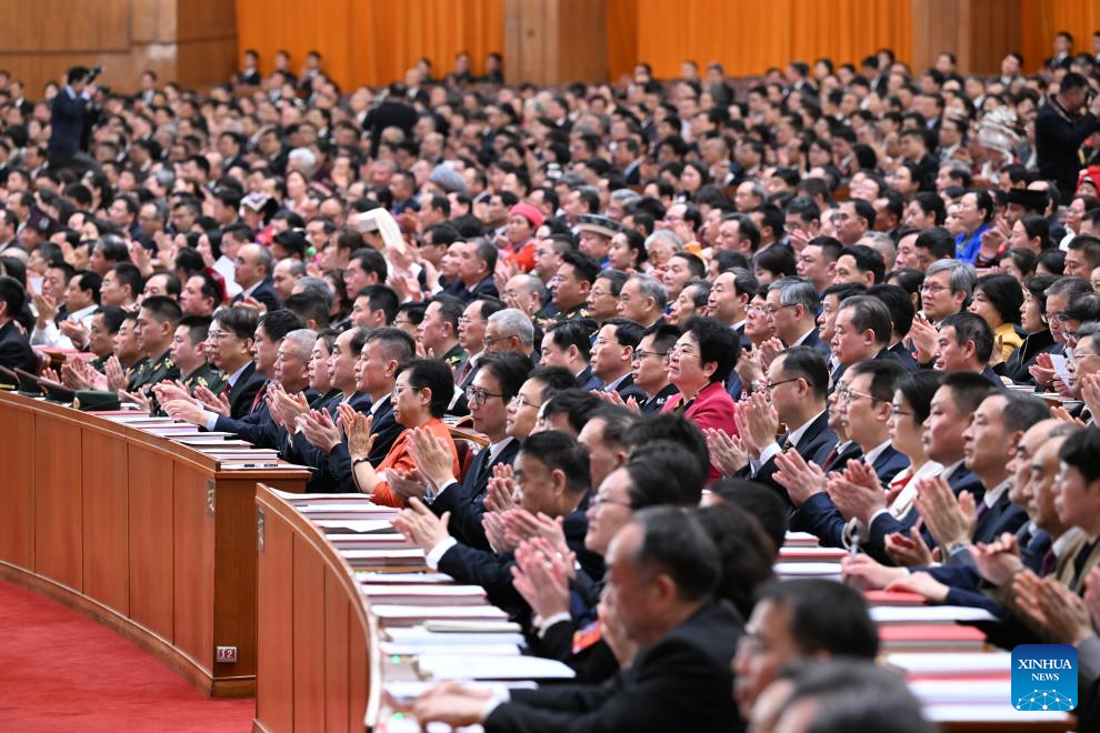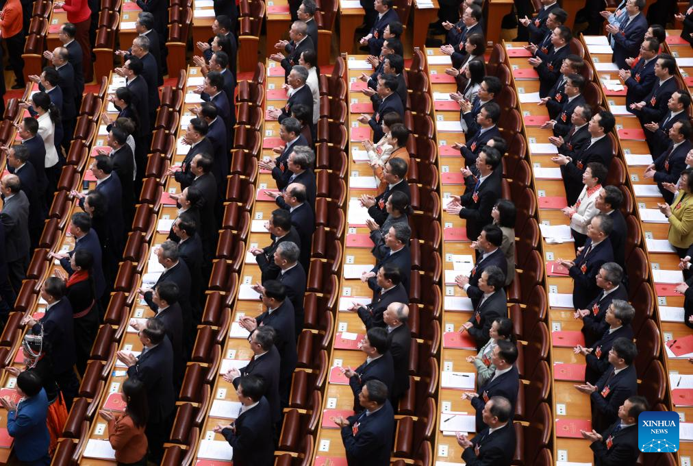 The 14th National People's Congress (NPC) holds the closing meeting of its fourth session at the Great Hall of the People in Beijing, capital of China, March 12, 2026. Chinese President Xi Jinping and other leaders including Li Qiang, Wang Huning, Cai Qi, Ding Xuexiang, Li Xi and Han Zheng attended the meeting. (Xinhua/Xie Huanchi)