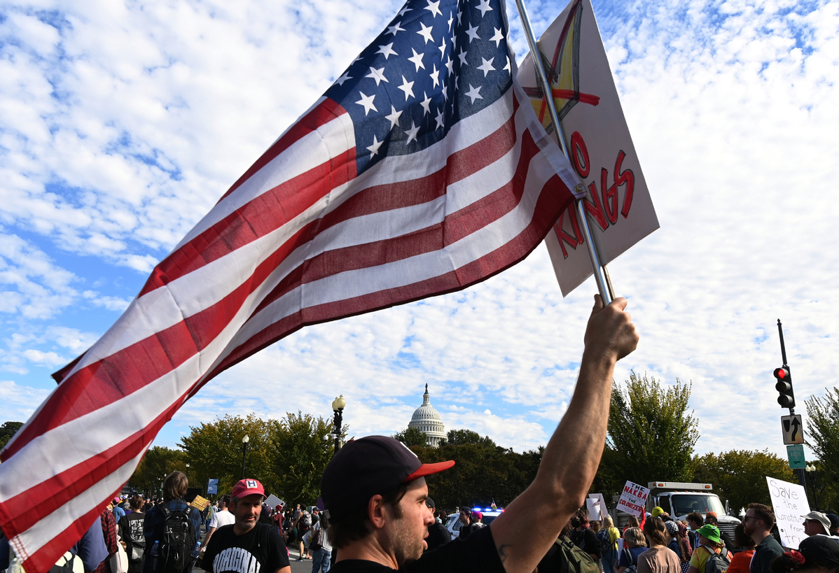 Protesters gather in Washington, DC, US, Oct 18, 2025. [Photo/Xinhua]