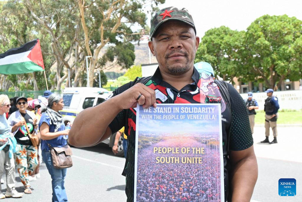 At the protest, Barry Mitchell, a member of the SACP's Central Committee, told Xinhua that the demonstration was aimed at condemning U.S. imperialism, in particular its action against Venezuela and the capture of its head of state.