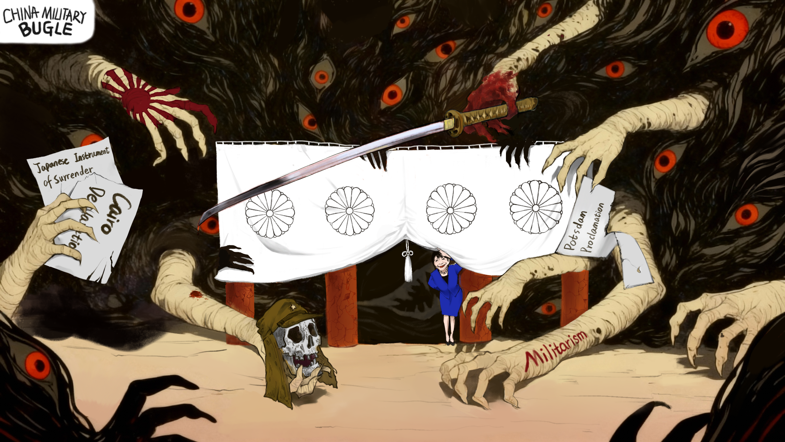 China's foreign ministry slashed the moves as a "blatant challenge to historical justice and human conscience," demanding Japan be prudent on historical issues such as the shrine and completely sever ties with militarism.