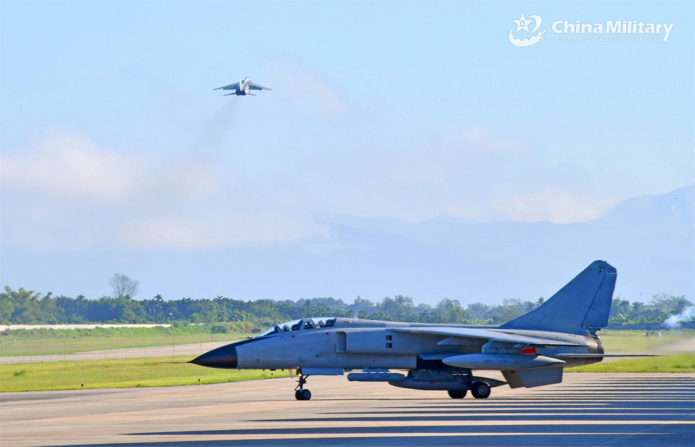 A fighter jet attached to an aviation brigade with the air force under the PLA Southern Theater Command taxis on the runway in the multi-subject flight training on September 20, 2023. (eng.chinamil.com.cn/Photo by Zhuo Lingpeng)