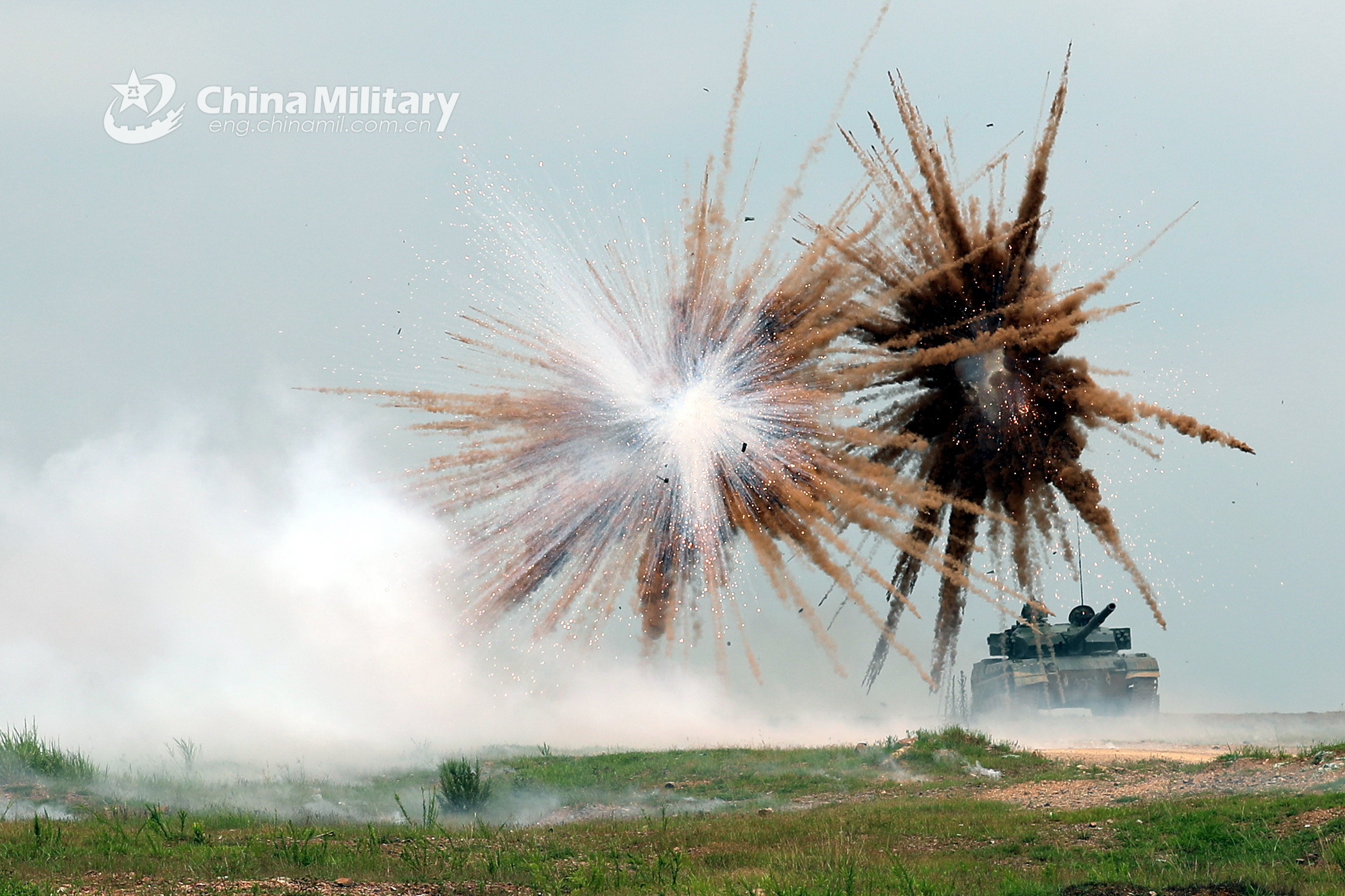 Armored vehicles attached to a combined arms brigade under the PLA 72nd Group Army fire multi-type smoke bombs as a concealment during a live-fire training exercise on July 7, 2020. (eng.chinamil.com.cn/Photo by Zhang Wenju)