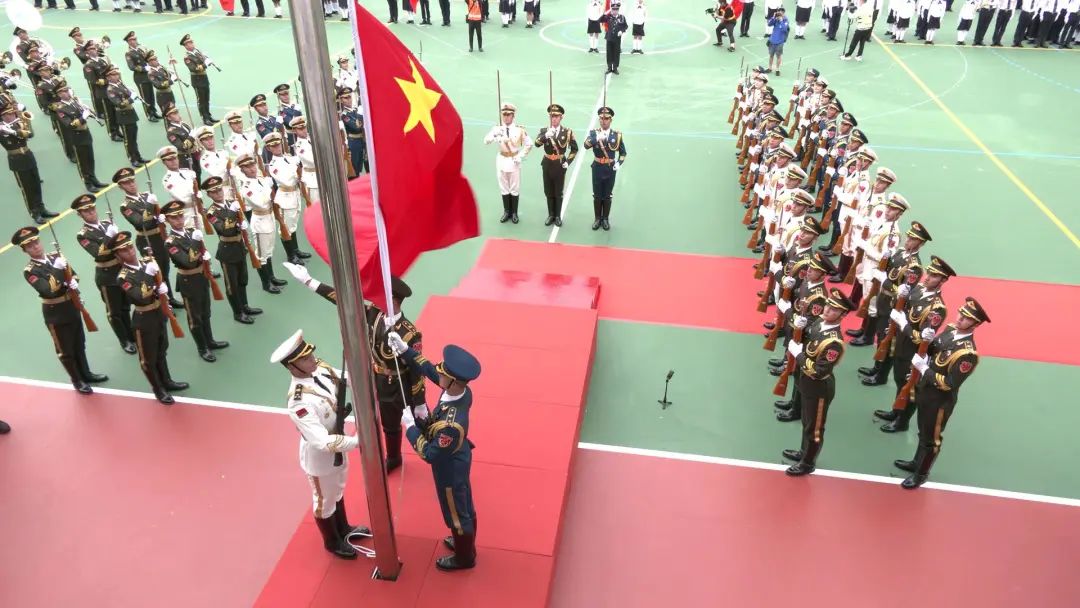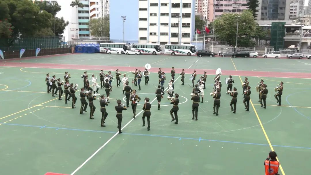 At about 11 am, the guard of honor of the PLA Hong Kong Garrison entered the venue at Sha Tsui Road Playground, Tsuen Wan, Hong Kong, and raised the national flag at the beginning of the event. After that, members of the AHKF presented a march-past parade, during which they walked by the reviewing stand in measured steps and high spirits. At the end of the parade, the guard of honor and the band of the Hong Kong garrison presented an exhibition drill and a military band performance in success, winning warm applause from the citizens on the spot.
