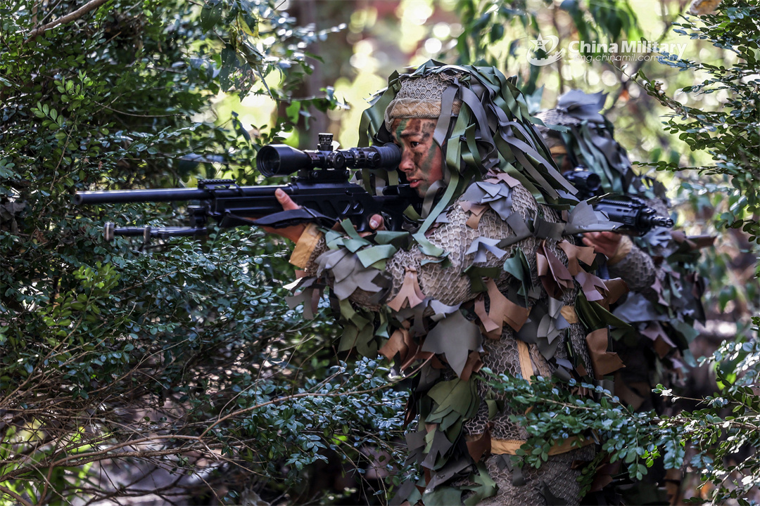 Snipers assigned to a brigade of the PLA 72nd Group Army participate in a tactical training exercise on December 25, 2023. (eng.chinamil.com.cn/Photo by Hu Xuefeng)