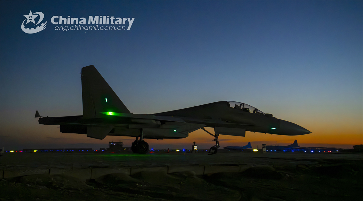 A J-16 multi-role fighter jet attached to an aviation regiment under the Chinese PLA Air Force taxis on the flightline during a round-the-clock flight training exercise on October 10th, 2024. (eng.chinamil.com.cn/Photo by Xu Chengcheng)