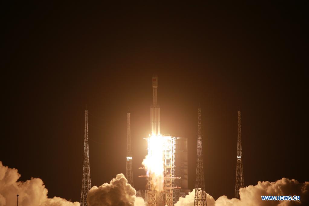 The Long March-7 Y3 rocket, carrying the Tianzhou-2 cargo spacecraft, blasts off from the Wenchang Spacecraft Launch Site in south China's Hainan Province, May 29, 2021. China launched the cargo spacecraft Tianzhou-2 on Saturday, which is scheduled to dock with the space station core module Tianhe to deliver supplies, equipment and propellant. (Photo by Tu Haichao/Xinhua)